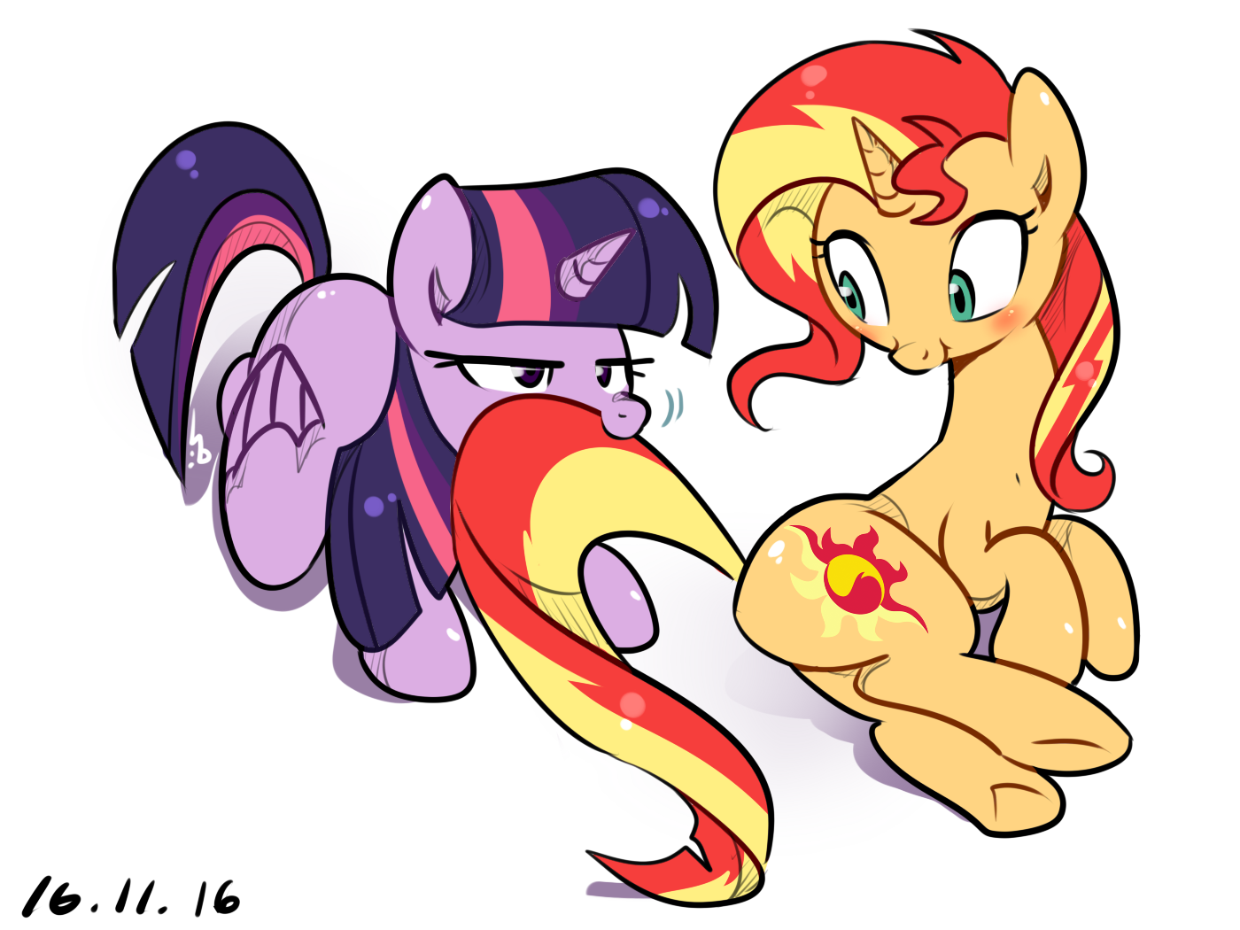 A ja spróbuję się obronić tym uroczym obrazkiem Sunset Shimmer karmiącej małą Lunę. Niczym madonna z małym kucem pędzla Michała Angela w Katedrze Najświętszej Celestii Zawsze Słonecznej.