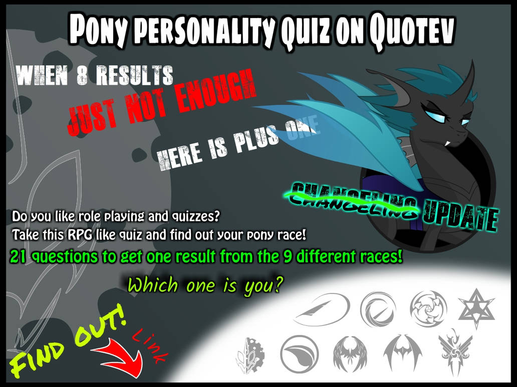 Wiecie może przedstawicielem jakiej rasy chcielibyście być, gdybyście mogli zamieszkać w Equestrii? To może chcecie to sprawdzić? Nie ma sprawy! Wystarczy wejść w poniższy link, dać się przesłuchać, odpowiadając na 21 pytań i gotowe.